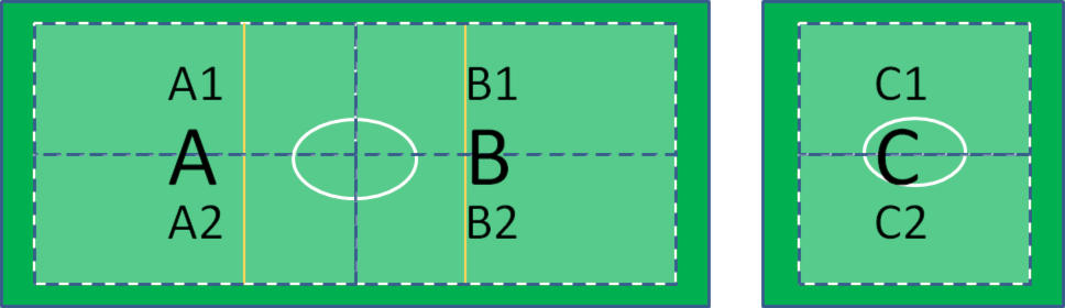 Lørenbanen er delt i to: en stor bane (foran klubbhuset), og en 7-er bane (nærmest Refstad barnehage).